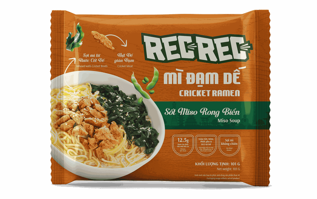 Mì Đạm Dế Rec Rec là dòng mì ăn liền cao cấp kết hợp giữa tiện lợi và dinh dưỡng, với nguồn đạm tự nhiên từ Dế – chứa 12.5 gram Đạm, các amino axit và khoáng chất cần thiết. Sản phẩm mang đến trải nghiệm ẩm thực hiện đại qua 4 hương vị lấy cảm hứng từ Á đến Âu. Sợi mì màu vàng tự nhiên, topping đầy đặn, tạo cảm giác no tròn và thật vị.